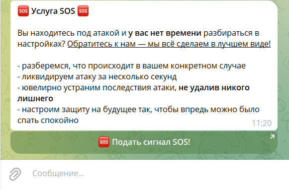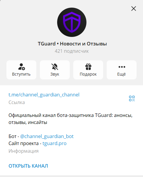 Есть также телеграмм-канал на 421 подписчика – @Channel_guardian_channel, там публикуются новости проекта и обзор инструментов бота TGuard. Также в паблике можно встретить кейсы от реальных клиентов, которые сообщают о наплыве ботов – очевидно, что «Тгуард» позиционируется в качестве экстренного инструмента помощи.