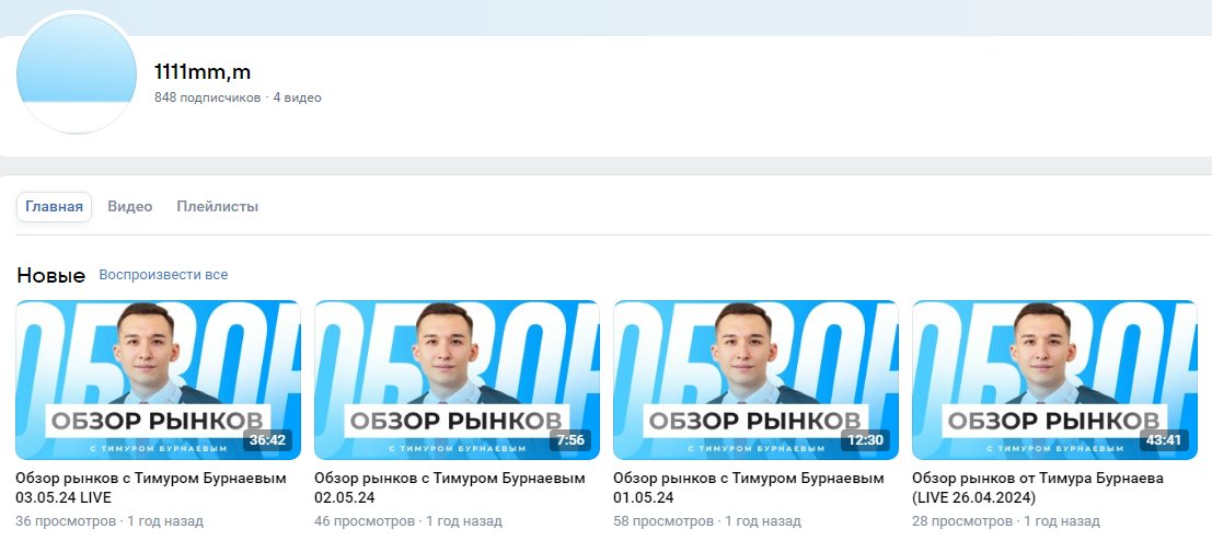 Timur выложил на сервисе ВКВидео в профиле под названием 1111mm m 4 видеоролика.