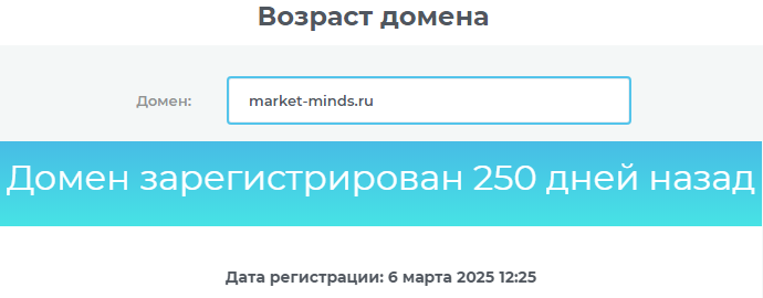 Просмотров также очень мало. Сайт сервиса «Маркет Миндс» был зарегистрирован в интернете в начале марта 2025 года.