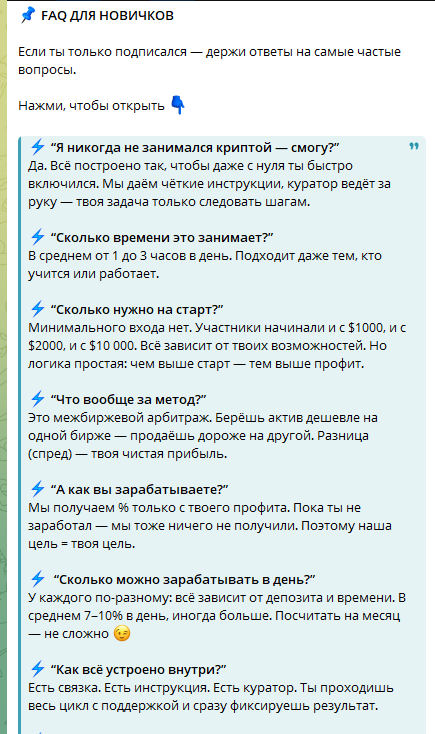 Также настораживает резкая переориентация из информационного канала в сообщество для заработка на арбитраже.