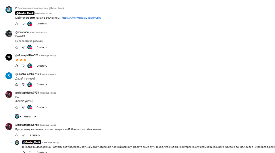 В самом Тгк «Трейдер с Мариуполя» отзывы не размещаются. А комментарии к публикациям отключены. Однако, много откликов есть под роликами в канале YouTube данного проекта.