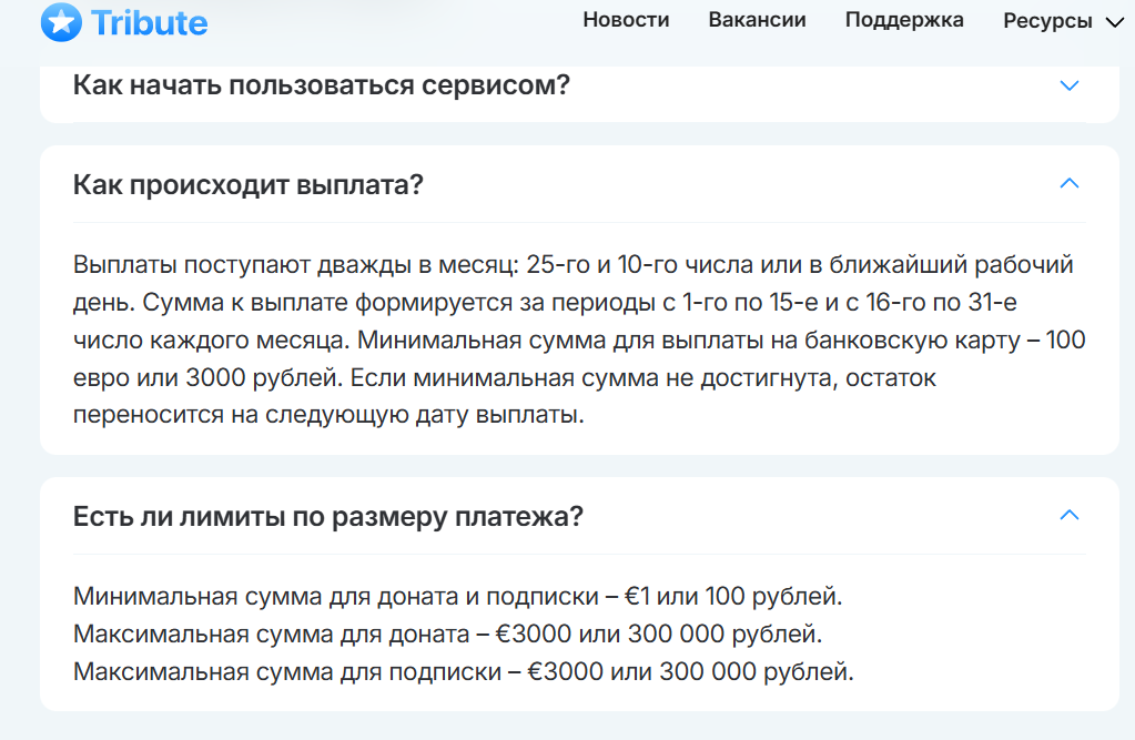 Проект предлагает получать деньги за донаты и подписки, но судя по мнению пользователей, в получении выплат могут отказать, поэтому рациональность сотрудничества с «Трибьют» в Телеграм оказывается чисто субъективным, а проверять, подходит сервис или нет, придется самостоятельно каждому автору.