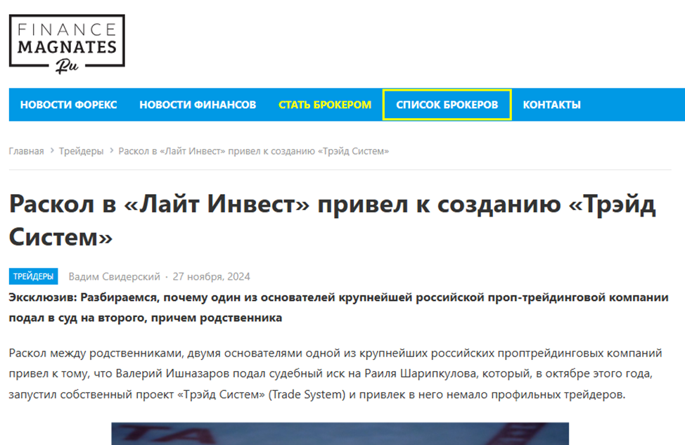 Одна из причин недовольства бывшего партнера Раиля — создание в октябре 2024 года проекта TSystem — куда, по оценкам независимых экспертов, ушла группа из более 30% действующих трейдеров Lite Invest.