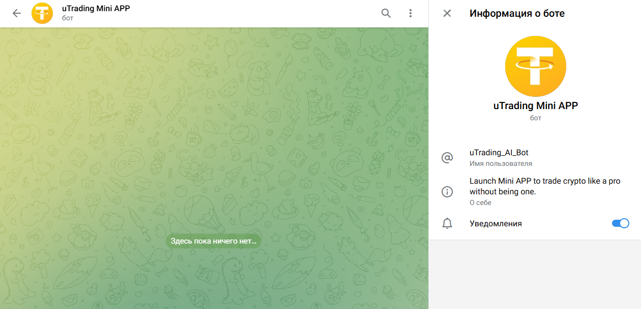 Utrading — это автоматический бот для торговли криптовалютой, который под капотом якобы использует искусственный интеллект и машинное обучение. Команда обещает полностью бесплатный функционал, который через API можно подключить к любой торговой бирже и торговать по собственному алгоритму или сигналам от бота. Но стоит ли использовать Utrading Ai Bot в телеграм, узнаете в данной статье.