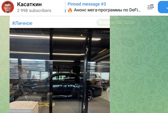 В перерыве между постами Касаткин не забывает публиковать фотографии дорогих автомобилей или люксовых мест, создающие ему образ «успешного человека». Это излюбленный прием скамеров и инфоцыган, пытающихся воздействовать на наивных обывателей.