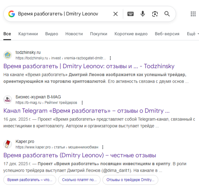 Обзор телеграм-канала «Время разбогатеть», анализ деятельности и отзывы о проекте трейдера Dmitry Leonov