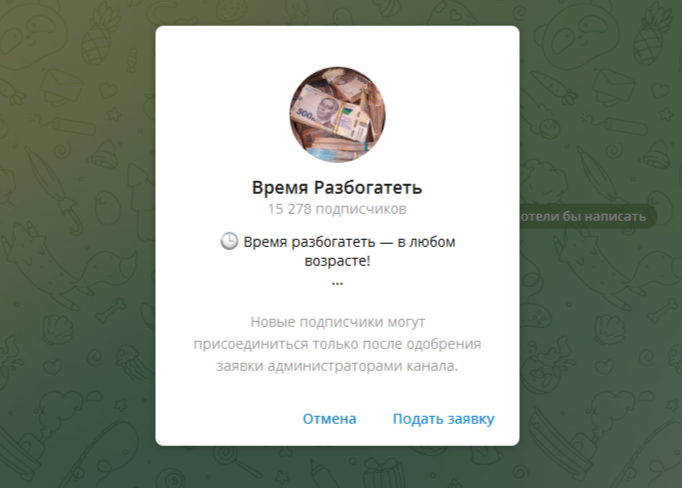 На момент проверки телеграм-канал оказался недоступен. Попасть в него можно только после одобрения заявки администратором. К сожалению, наша заявка на протяжении суток так и не была принята.