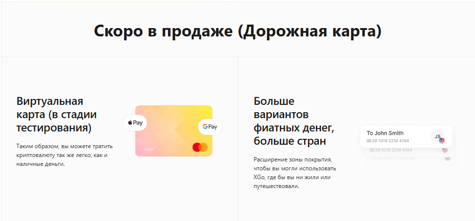 В будущем компания XGo планирует выпустить собственную виртуальную карту, которая позволит оплачивать товары и услуги криптовалютой. Также она хочет расширить перечень доступных фиатных валют.