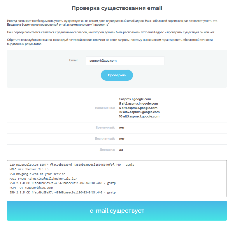 Для связи с техподдержкой указана только электронная почта support xgo com. Проверка показала, что контакт существует.