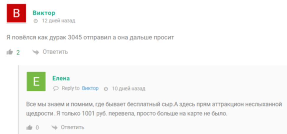 Как показала проверка, телеграм-аккаунт Пономаревой Яны Олеговны можно считать мошенническим. Девушка не переводит никому средства, так как розыгрыши фальшивые. Наоборот, она обманывает пользователей на деньги. Мы нашли несколько признаков мошенничества: