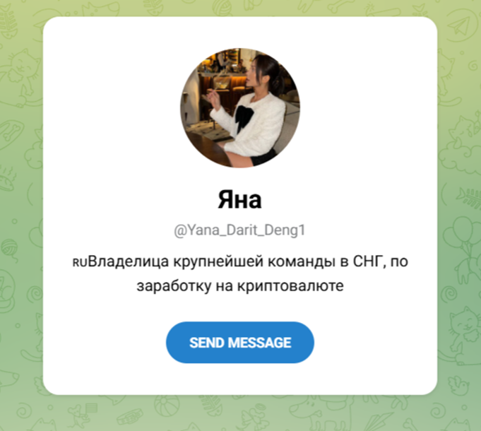 По словам блогера Yana Darit Deng1, она является успешным трейдером, который периодически раздает деньги. Якобы она занимается благотворительностью. С пользователями она делится анализами графиков и скринами заработков. Это скопированный с других каналов контент. Сама Яна только мотивирует и призывает принять участие в розыгрыше. Есть несколько условий розыгрыша: