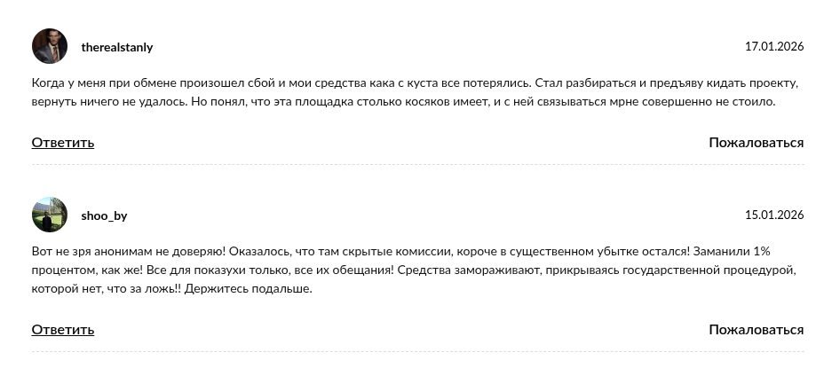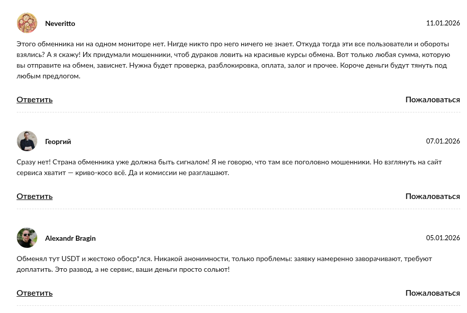 Если вам предлагают провести обмен через этот сервис в рамках «выгодной арбитражной связки», будьте уверены – вас пытаются развести. Легитимные обменники всегда присутствуют на крупных агрегаторах, имеют прозрачную историю и никогда не требуют залогов за разморозку средств.