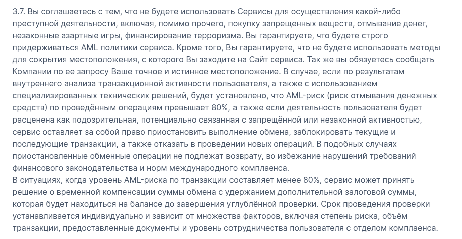 Изучение внутренней документации сервиса – занятие скучное, но в данном случае оно спасает депозит. Самый интересный момент скрыт в правилах, которые большинство пользователей пролистывает не глядя. Речь идет о пресловутом пункте, где обменник YourCoins оставляет за собой право потребовать от клиента внесения «залоговой суммы» для верификации.