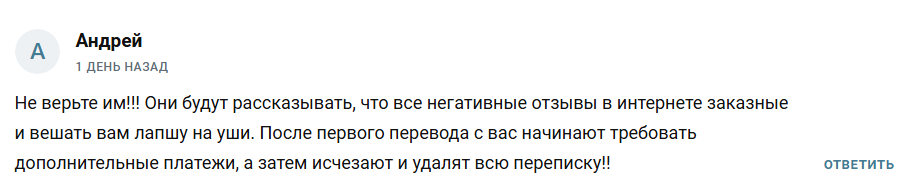 Ранее было сказано, что гарантий на вывод нет, а команда лишь предлагает опробовать услуги на минимальном депозите. Он составляет 500 рублей, но за сутки вам предлагают выплатить свыше 50 000 рублей. В таком случае неизвестно, зачем вообще Александре нужны частные инвесторы, ведь за один раз она может заработать больше, чем все ее клиенты вместе взятые. Вдобавок ни одна стратегия на крипте не способна приносить такой доход постоянно, из-за чего все слова в канале и боте являются обманом.
