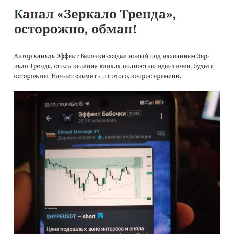 В сети нет достоверных отзывов об этом проекте, так как он появился относительно недавно, но мы столкнулись с обзорами и жалобами. Утверждается, что владелец телеграм-канала «Зеркало Тренда» раньше занимался сообществом «Эффект Бабочки», которое было заблокировано из-за жалоб.